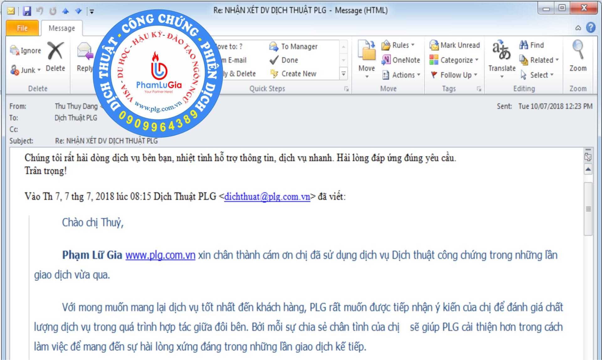 Cám ơn Chị Thuỷ Kigimex đã chia sẻ ý kiến đến PLG. Chúc công ty chị ngày càng thành công. Dịch vụ dịch thuật công chứng 5/5 - (1 bình chọn)